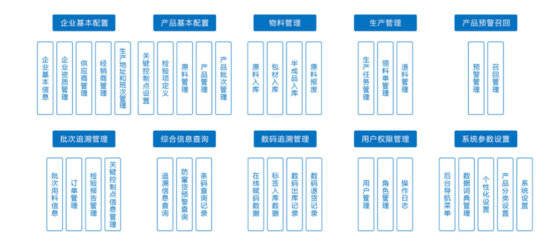 产品追溯管理系统,赋予每个产品唯一的追溯码,让消费者可从产品源头进行信息追踪查询,包括产品的生产、加工、质检、包装、销售所有环节的信息追踪,一目了然,实现从原料基地到市场终端各环节的精细化管理。